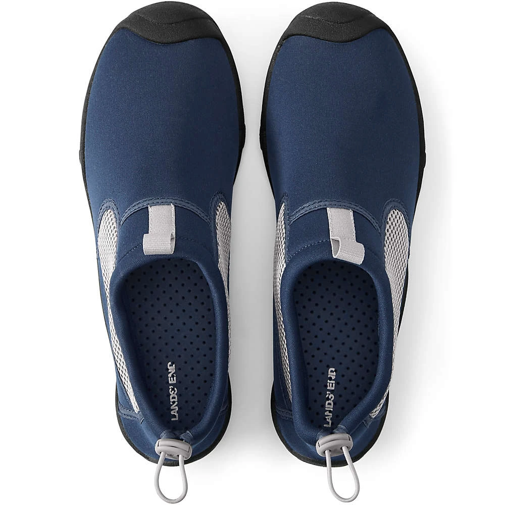 Unsere Badeschuhe sind prädestiniert für alle Arten von Wassersport, zum Schwimmen und zum Spazierengehen an steinigen Kiesstränden. Dank Anziehschlaufe und elastischem Kragen schlüpfen Sie ganz bequem hinein. Die flexible Gummisohle bietet guten Grip und schützt vor jedem Untergrund im und außerhalb des Wassers. Und der Bungeezug zum Festzurren garantiert, dass Sie die Schuhe auch beim Kopfsprung ins kühle Nass anbehalten.