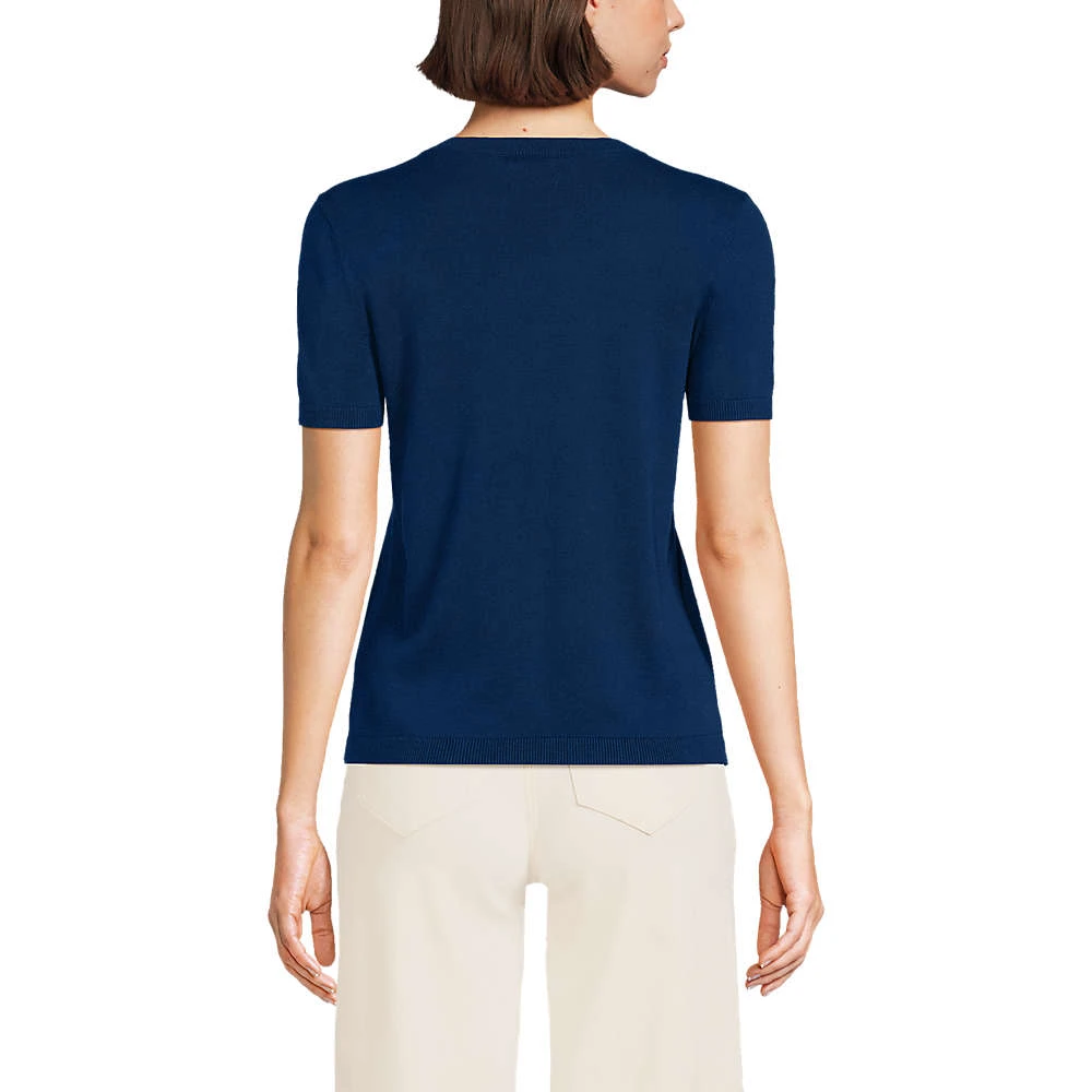 Definitiv die elegantere und auch etwas wärmere Alternative zum T-Shirt: unser Baumwoll-Feinstrickpullover aus reiner, weicher Baumwolle. Mit hohem Rundausschnitt und kurzen Ärmeln lässt er Sie überall gut aussehen, wunderschön zu einem Rock, edel zu Jeans und Cordhose.