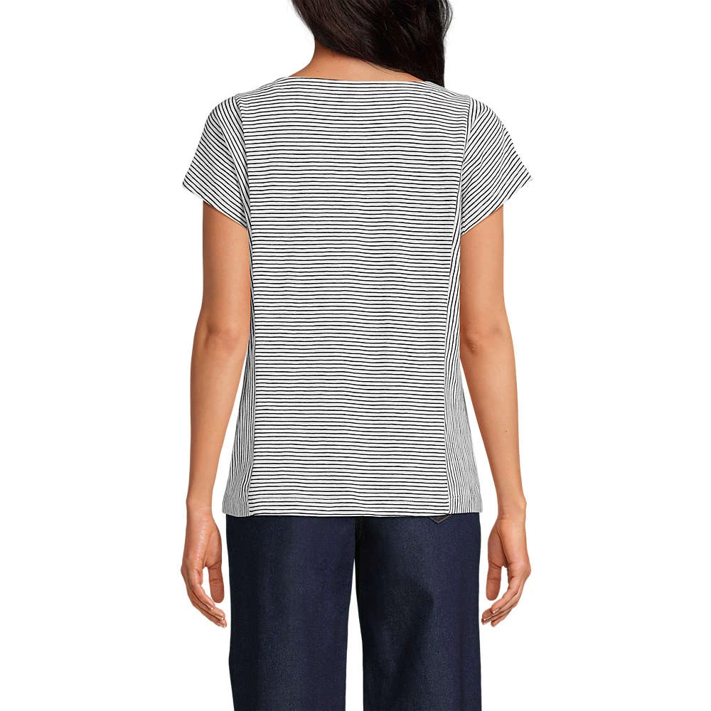 Die ganze natürliche Hautfreundlichkeit von Baumwolle und ein Schnitt, der „Sommer“ ruft – das Baumwoll-Jerseyshirt wird uns an vielen schönen Tagen begleiten. Mit femininem und doch bequemem Schnitt eignet es sich für alle Freizeit-Looks; dank angeschnittener Ärmel sind Sie bei aller Luftigkeit immer gut angezogen.