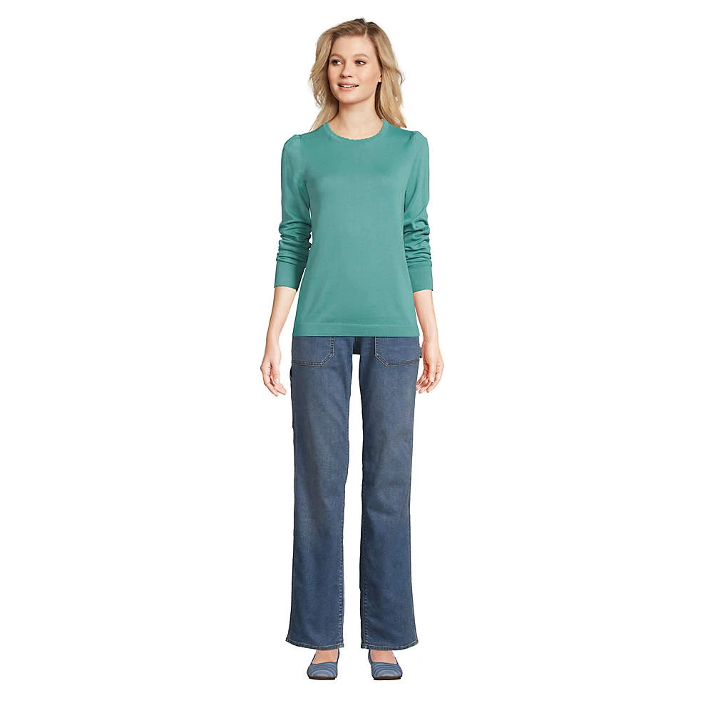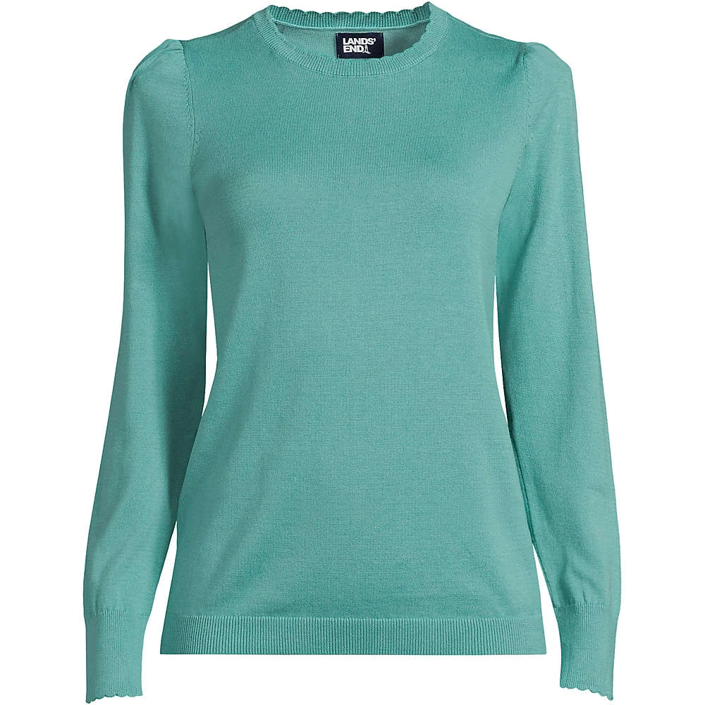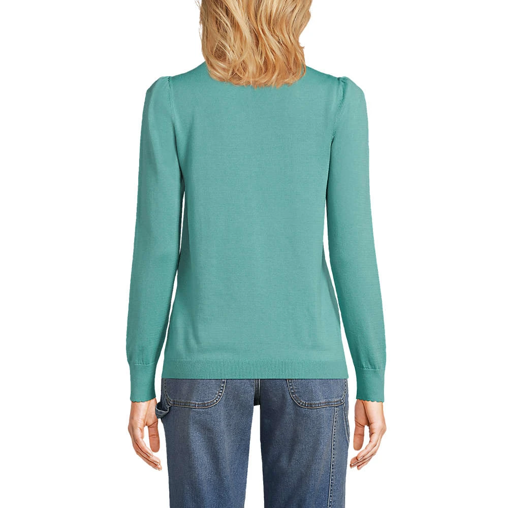 Das Seemannsgarn der nächsten Generation: ein weicher, feiner Baumwollpullover mit hohem Ausschnitt und subtil femininen Details wie Mäusezähnchen und Puffärmeln. Wundervoll zu jeder Art von Hosen, hinreißend zu einem Faltenrock und einfach perfekt in jeder Übergangssaison.