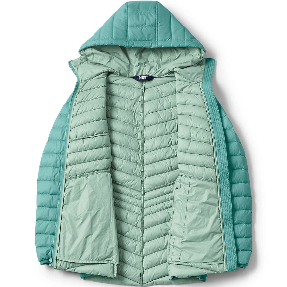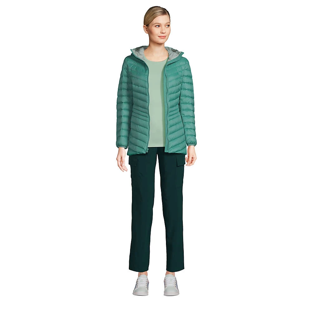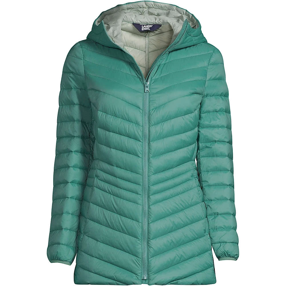 Unsere ultraleichte Daunenjacke mit Packfach, die Sie so lieben, hat jetzt auch eine Kapuze, kuschelig warm isoliert und schnell angezogen gegen kühle Brisen, Schneeflöckchen, Regenböen und mehr. Geblieben ist die feminine Taillierung, die die Jacke zum optimalen Partner für Solo-Looks mit Rock und Kleid oder Lagenlooks (beispielsweise unter einem weiter geschnittenen Regen- oder Wintermantel) macht. Von schönen Spätsommertagen an bis zum nächsten Frühling ein ebenso hochwertiges wie gut aussehendes Must-have, das uns, wenn nicht gerade getragen, grundsätzlich immer als kleines, feines Päckchen in der Tasche begleiten kann.