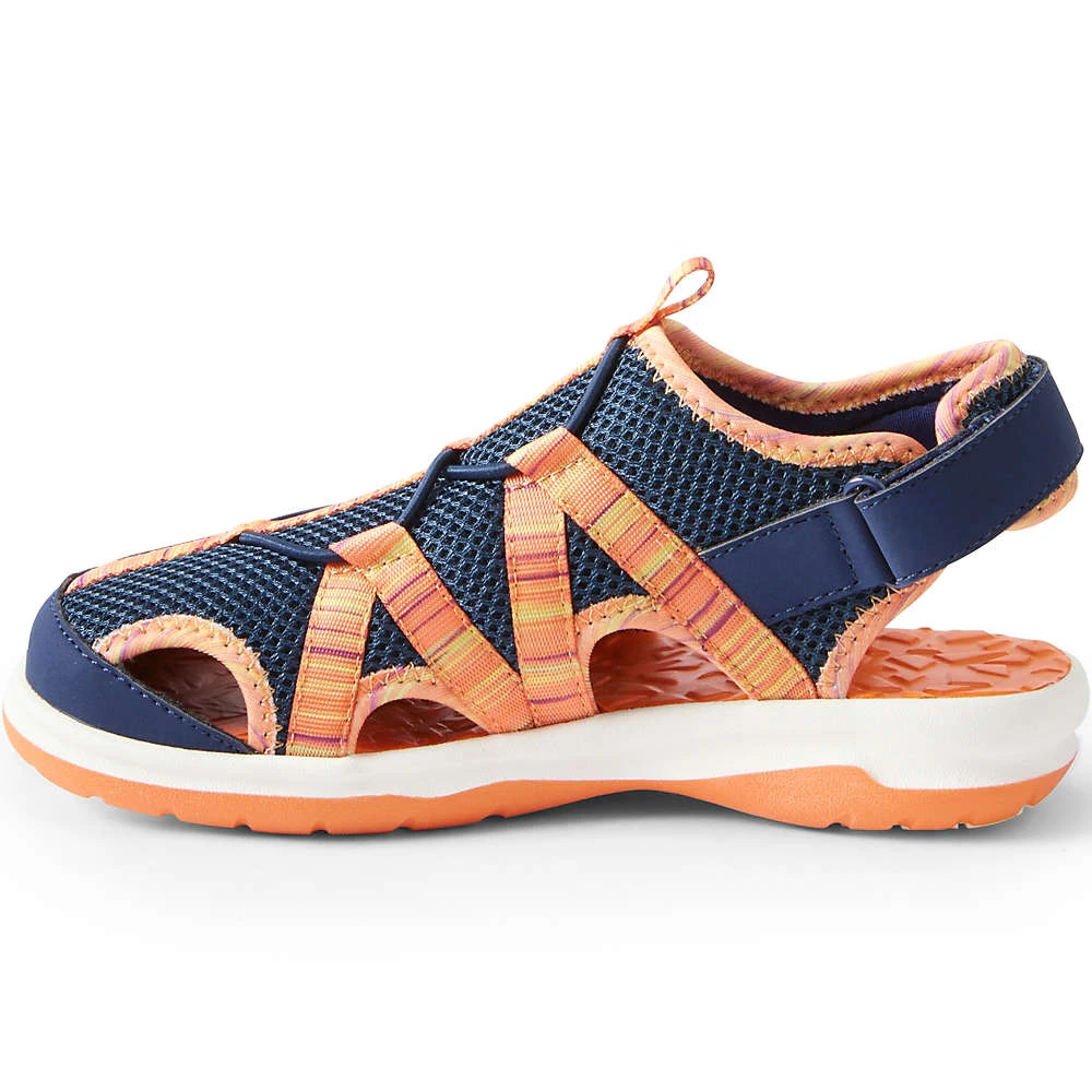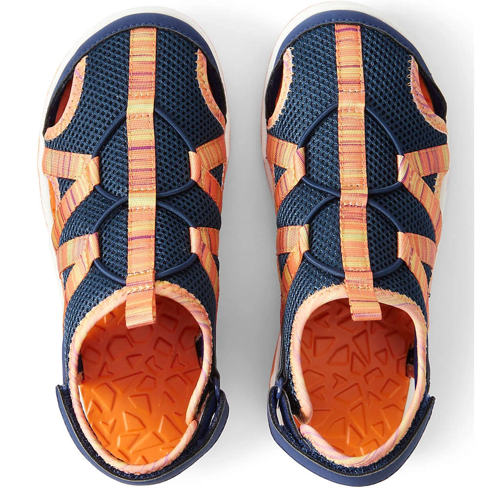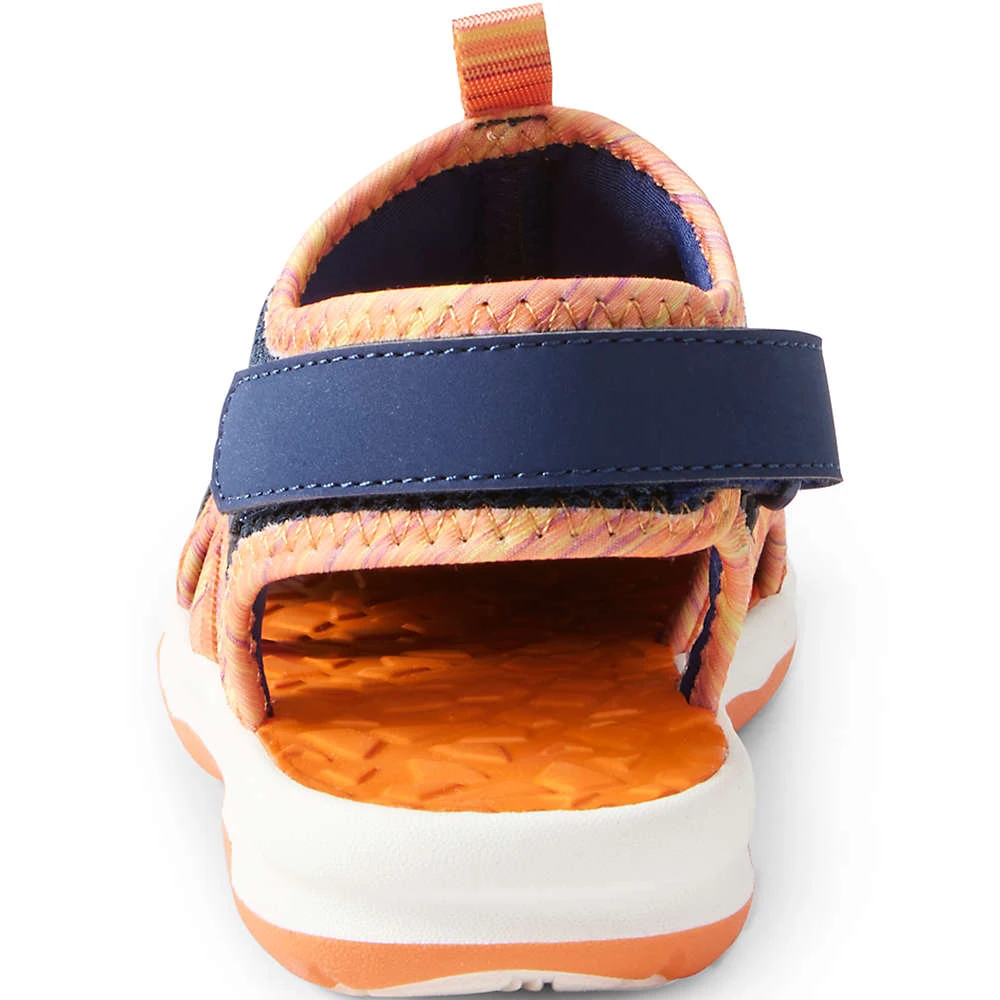 Mit diesen Wassersandalen sind Ihre Kleinen im Handumdrehen bereit für ihr Planschabenteuer am Pool oder Strand. Denn der Klettverschluss sorgt nicht nur dafür, dass sich die Schuhe super schnell an- und ausziehen lassen, sondern ermöglicht auch einen passgenauen Sitz. Die Zehenkappe schützt kleine Füße obendrein vor spitzen Steinen oder heißem Sand.