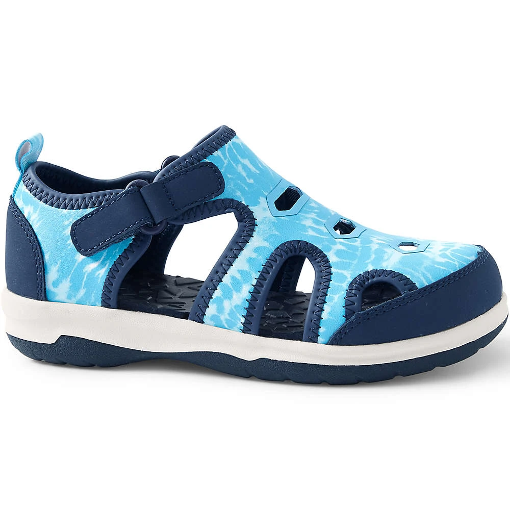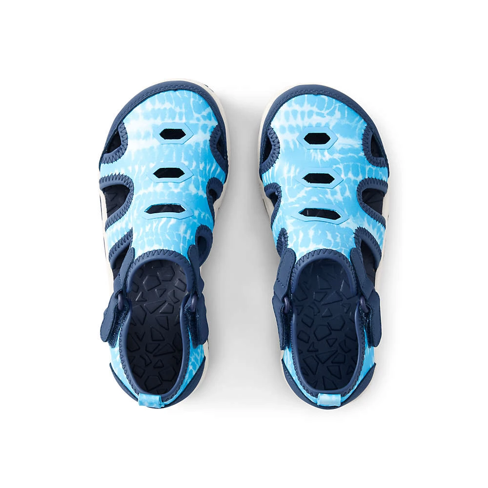 Mit diesen Wassersandalen sind Ihre Kleinen im Handumdrehen bereit für ihr Planschabenteuer am Pool oder Strand. Denn der OpenWIDE-Klettverschluss sorgt nicht nur dafür, dass sich die Schuhe extra weit öffnen und somit super schnell an- und ausziehen lassen, sondern ermöglicht auch einen passgenauen Sitz. Die Zehenkappe schützt kleine Füße obendrein vor spitzen Steinen oder heißem Sand.