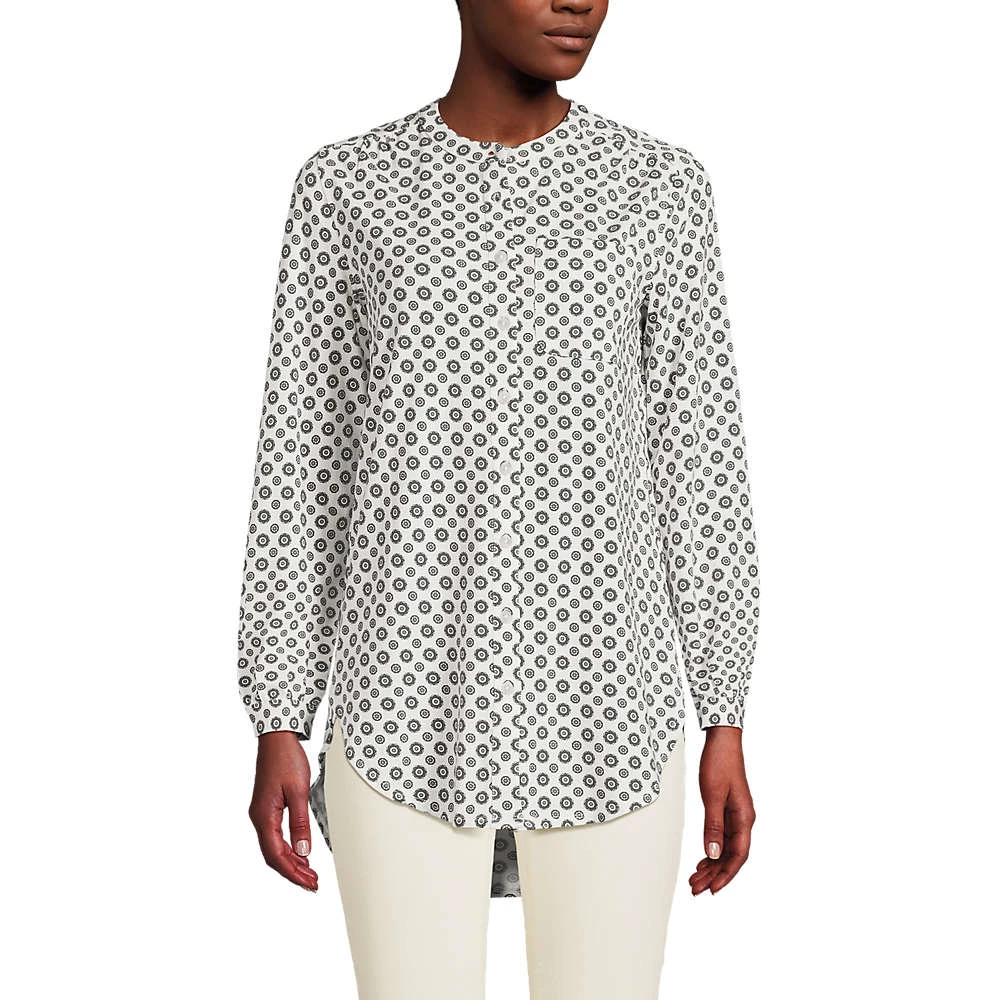 Schön lang, schön weich und leicht – unsere Jerseybluse aus dem bewährten, fließenden Baumwolle/Modal-Mix hat den Sommer im Gepäck und sieht dabei so stylish aus, dass sie getrost mit darf ins Büro.