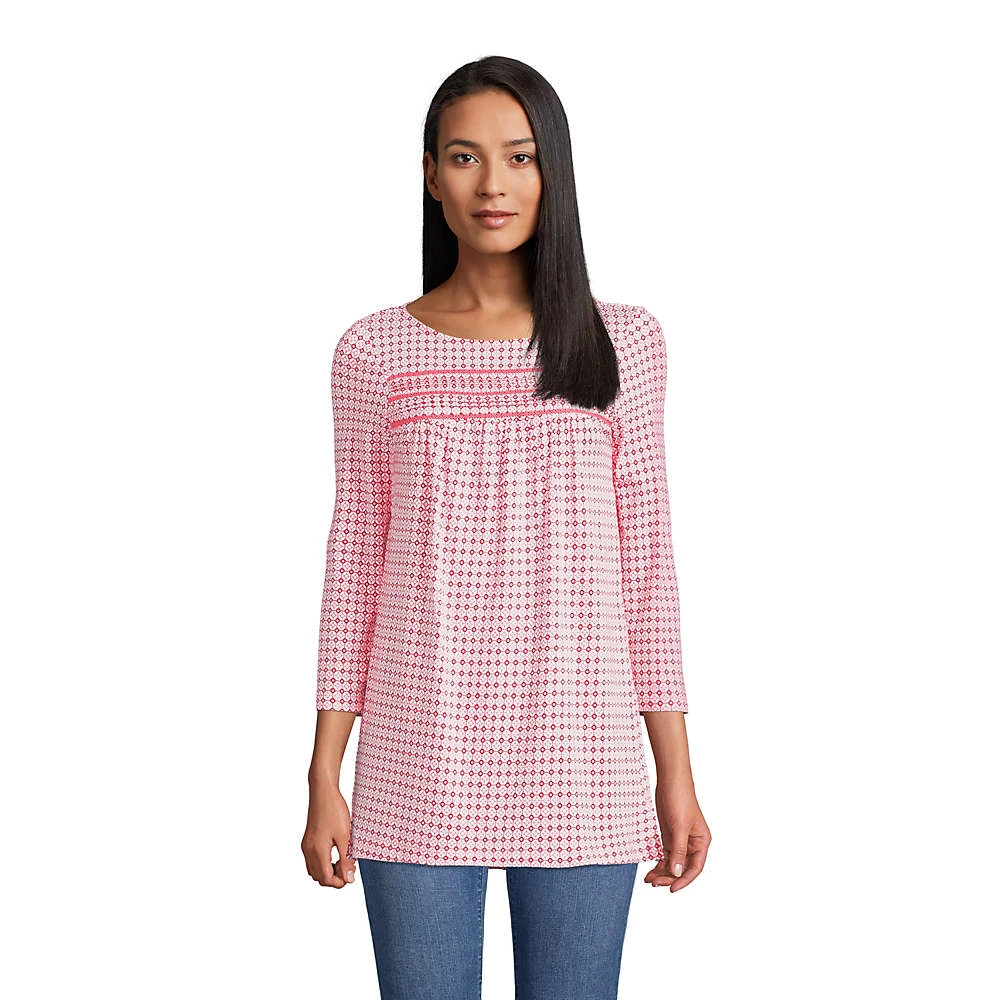 Wir lieben softe Shirts mit femininen Details, die immer in Mode sind. Dieses ist einfach ein Hingucker, mit zarter Lochmusterborte vorne und Knopfverschluss im Nacken. Dazu das Material unserer Wahl: ein seidig fließender, stretchiger Baumwolle/Modal-Mix, leicht und hautfreundlich. Herrlich zum Entspannen zu Hause oder für ein gemütliches Essen mit Freunden.