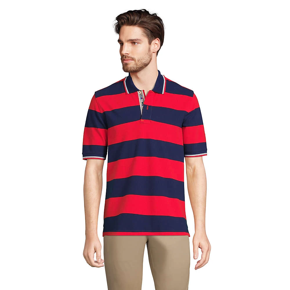 Komfort steht bei uns an erster Stelle, was Sie bei unseren Komfort-Polos auch direkt spüren werden! Was sie so besonders macht, sind 3% Stretch, die atmungsaktive Baumwolle mit charakteristischer Piqué-Wabenstruktur und das etwas schwerere Gewebe. Dadurch, dass wir unsere Komfort-Polos vorwaschen, fühlen sie sich schon beim ersten Tragen angenehm weich an – und sehen mit den Kontraststreifen an Kragen und Ärmeln außerdem sportlich elegant aus. Als i-Tüpfelchen haben wir die Knopfleiste mit gemustertem Webstoff unterlegt: dezent und einzigartig.