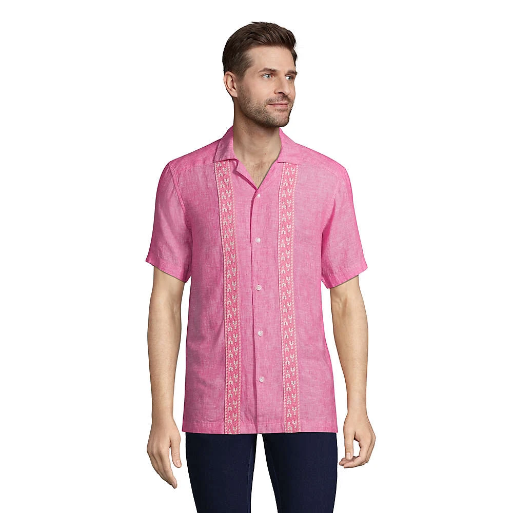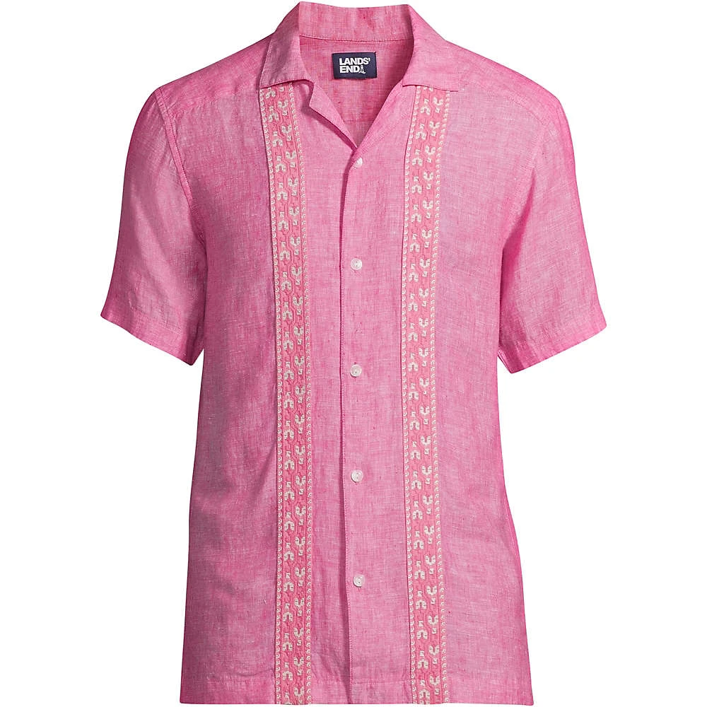 Das klassische Revershemd, bekannt aus den 1950er Jahren, ist zurück. Ein gerader, kastenförmiger Saum, die kurzen Ärmel und der kerbenförmige Kragen sind die typischen Merkmale. Unsere moderne Variante dieses Klassikers kommt in purer Leinen-Qualität und mit Stickereien auf der Vorderseite. Ein absolutes Must-have für den Sommer!