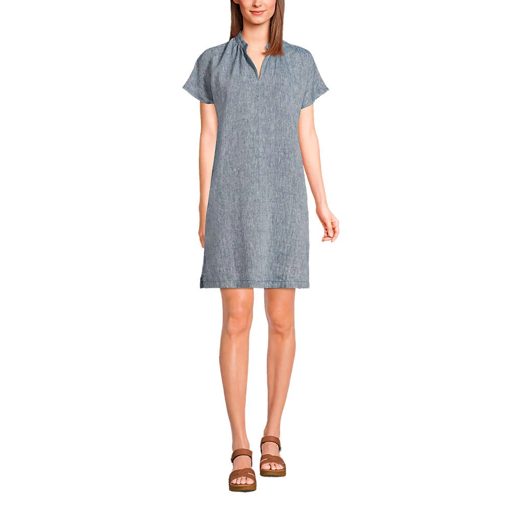 Ziehen Sie in der Freizeit ein Paar Sandalen dazu an und Ballerinas ins Büro – wir finden dieses wandelbare Leinenkleid genau richtig für alle warmen Tage. Reines Leinen kann nicht genug gepriesen werden: Bereits vor abertausenden Jahren wurde Flachs gezüchtet und zu unglaublich langlebigem, atmungsaktivem, fungizidem und schmutzwehrenden Kleiderstoff verarbeitet. Der älteste kultivierte Leinenfund ist bereits über 30 000 Jahre alt. Greifen Sie also zu und investieren Sie in vorzeigbare Qualität, die hält und hält…