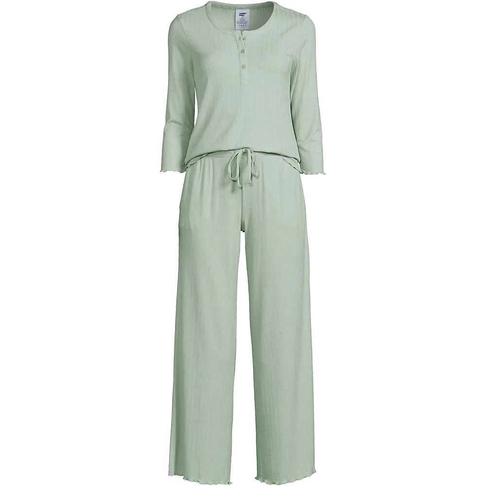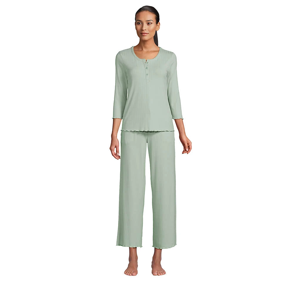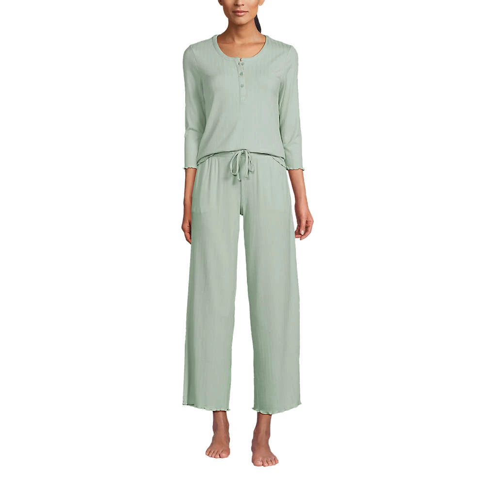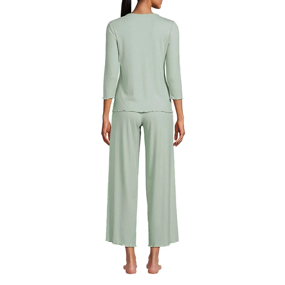 Mit diesem zarten Pyjama liegt Romantik in der (Abend-)Luft: Feiner Pointelle-Strick erinnert an elegante Spitze und verspielte Wellensäume treffen fließende Viskose. Der bequem weite Schnitt ist ideal für spätsommerliche Nächte bleibt uns nur noch, Ihnen süße Träume zu wünschen.