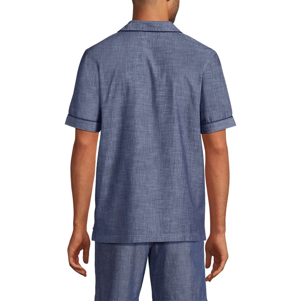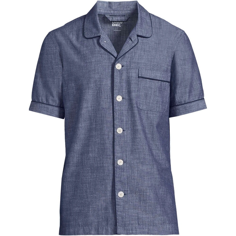 Sommerlich kühler Schlaf-Komfort: dafür sorgt bei diesem Pyjamahemd das leichte Popelin-Tuch aus reiner Baumwolle, die atmungsaktiv ist und sich auf der Haut seidig weich und kühl anfühlt. Herrlich! Klassische Details wie Paspelierungen dürfen natürlich genauso wenig fehlen wie eine praktische Aufhängeschlaufe. Übrigens: der Ausschnitt ist weit genug, um das Pyjamahemd einfach über den Kopf zu ziehen, so muss die Knopfleiste nicht bei jedem Anziehen geöffnet werden.