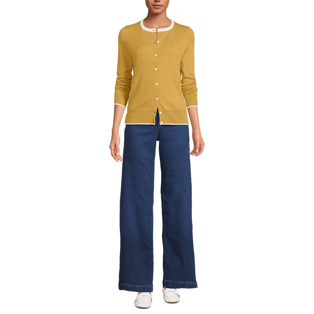 Der Klassiker, in wunderschönen neuen Farben! Ob im Sommer oder Winter, die Garnstärke macht unseren Supima-Cardigan das ganze Jahr über zu einem idealen Begleiter. Tragen Sie ihn im Sommer über der Schulter, um auf kühle Abende vorbereitet zu sein, oder im Winter über Blusen oder passendem Kurzarmpullover. Die Passform: nicht zu eng, aber feminin anliegend. Für die gewohnt anschmiegsame Qualität wird unser Feinstrick aus den seidigen Fasern der Supima®-Baumwolle gefertigt, Amerikas bester Baumwolle, in einer perfekten Melange mit etwas Nylon und Stretch, um ihn robust genug für den Alltag zu machen. Und weil Supima-Qualität die Farbe ausgezeichnet annimmt, behalten die Töne dauerhaft ihre intensive Leuchtkraft.