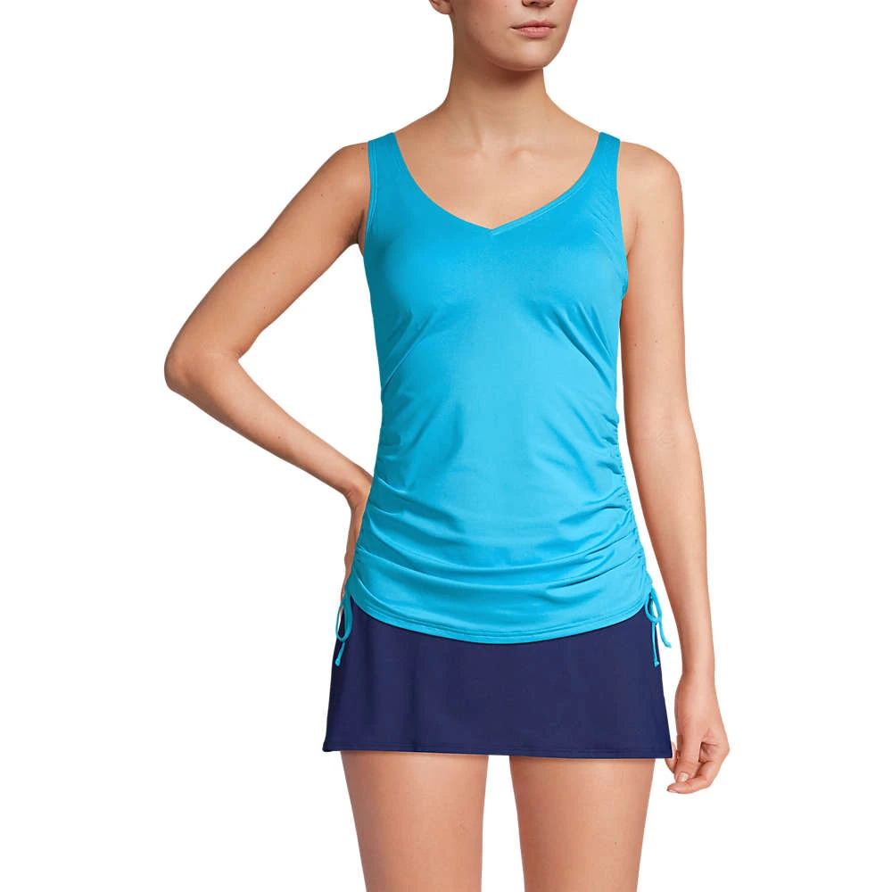 Dieses Tankini-Top mit V-Ausschnitt besticht mit einem schmeichelhaften Design (haben Sie die stylishe Raffung an der Seite gesehen?) und einem Bügel-BH für zusätzlichen Support. Mit den verstellbaren Trägern und Schlaufen können Sie die Passform perfekt einstellen. Das leistungsstarke Lycra Xtra Life Elasthan bietet bis zu zehn Mal mehr Chlorresistenz als herkömmliches Elasthan und hält darüber hinaus auch Sonnencreme und Hitze wesentlich länger Stand.