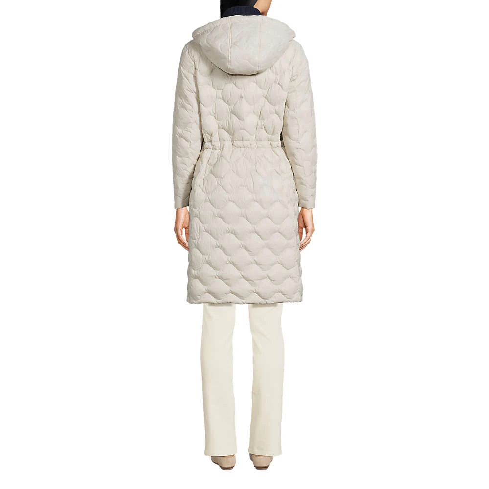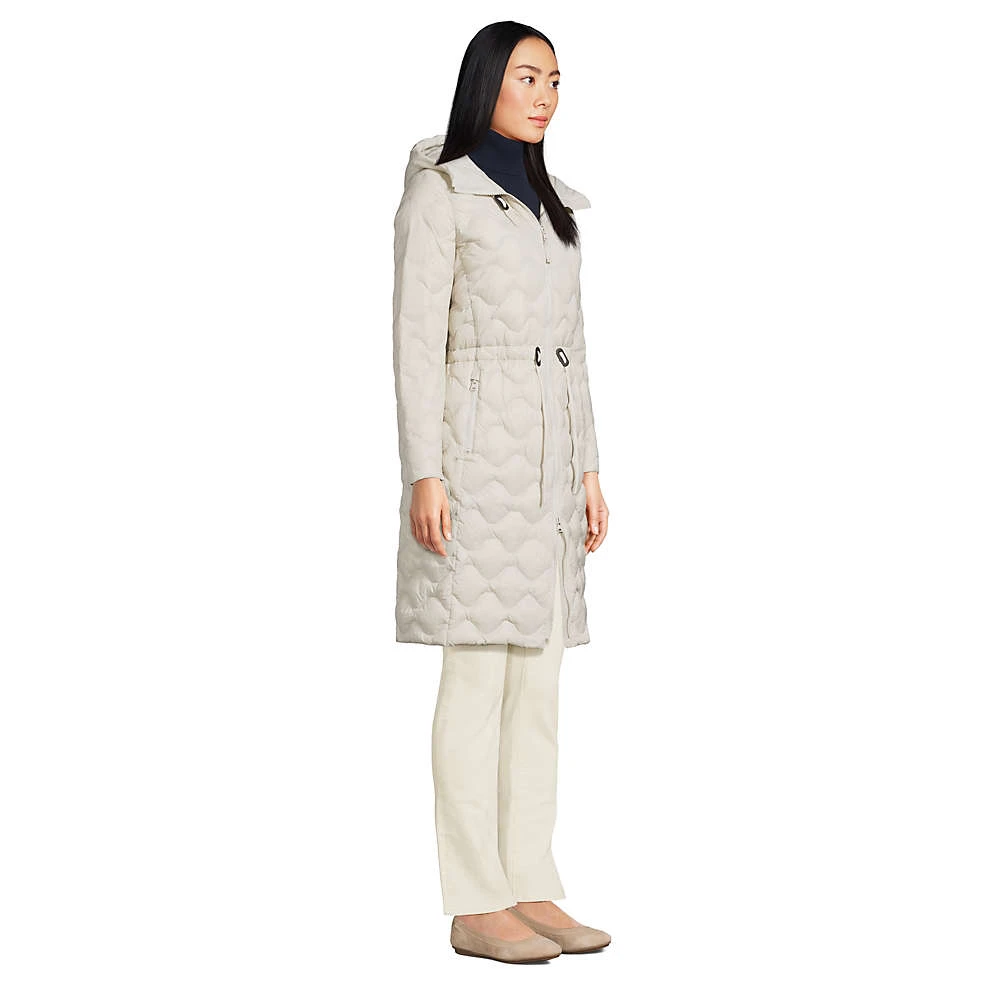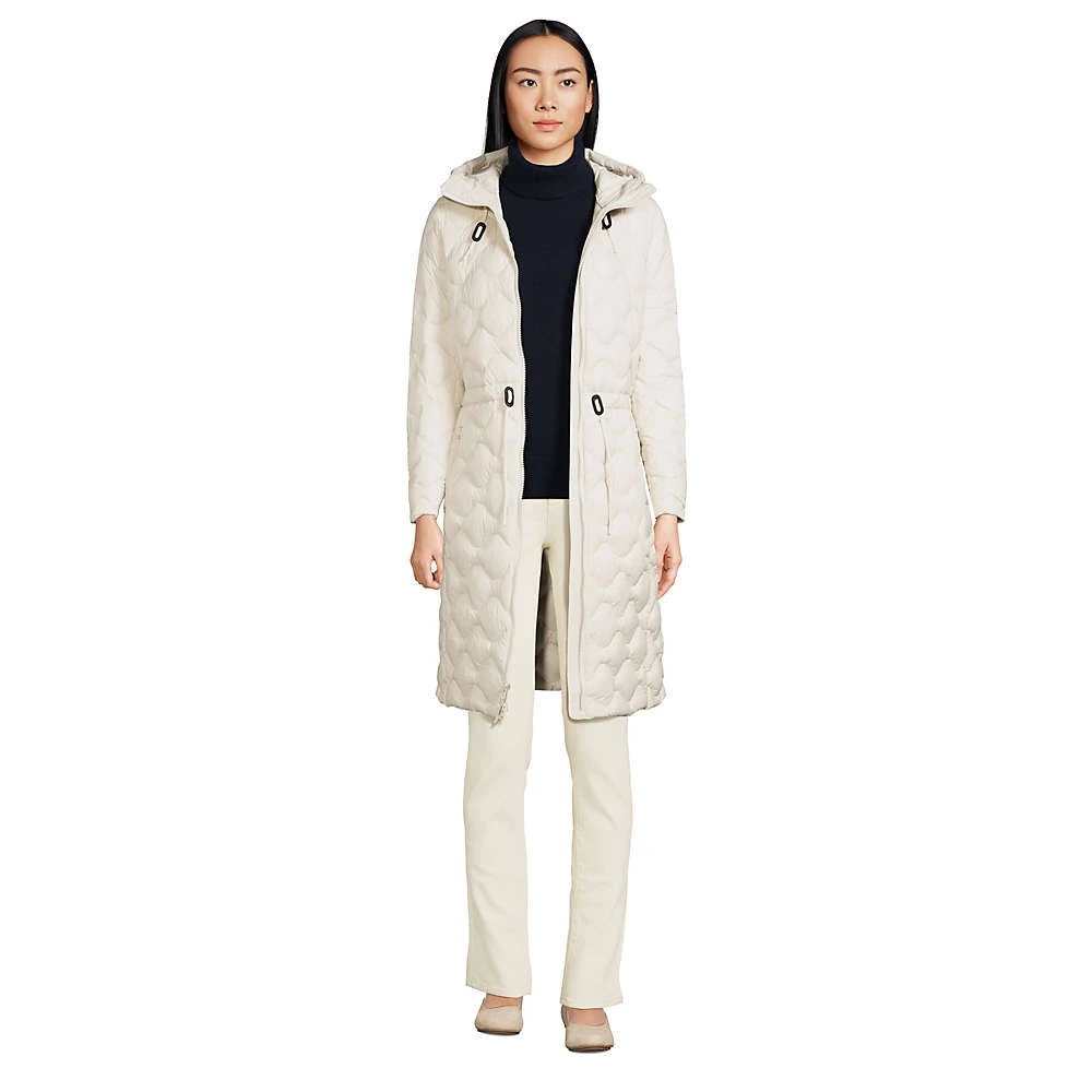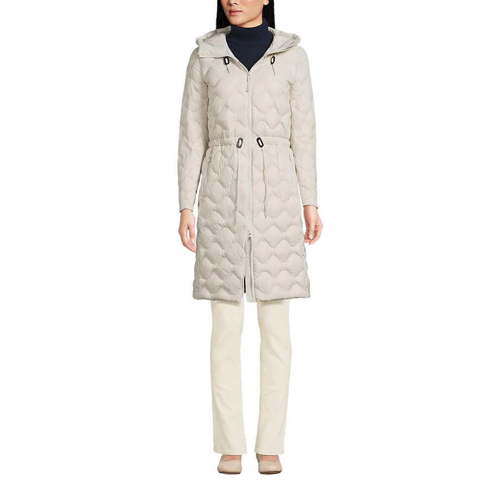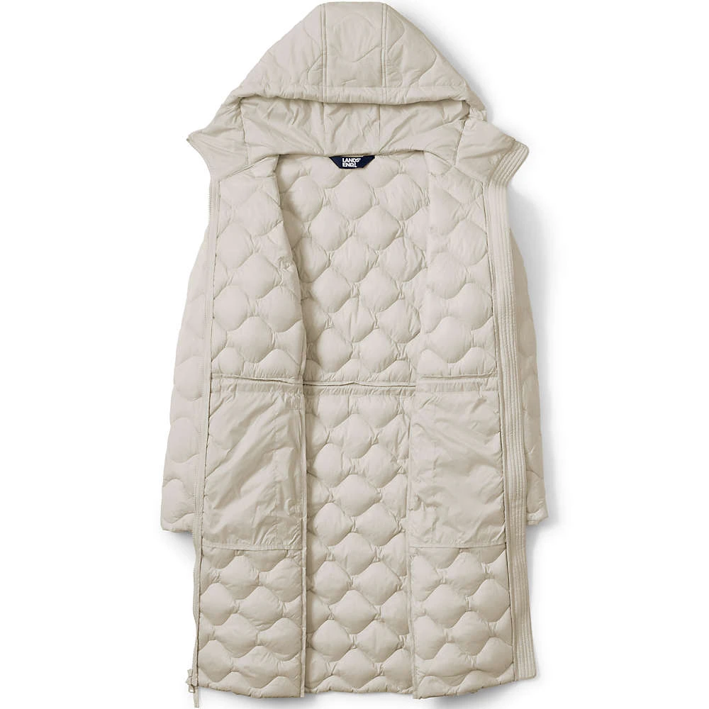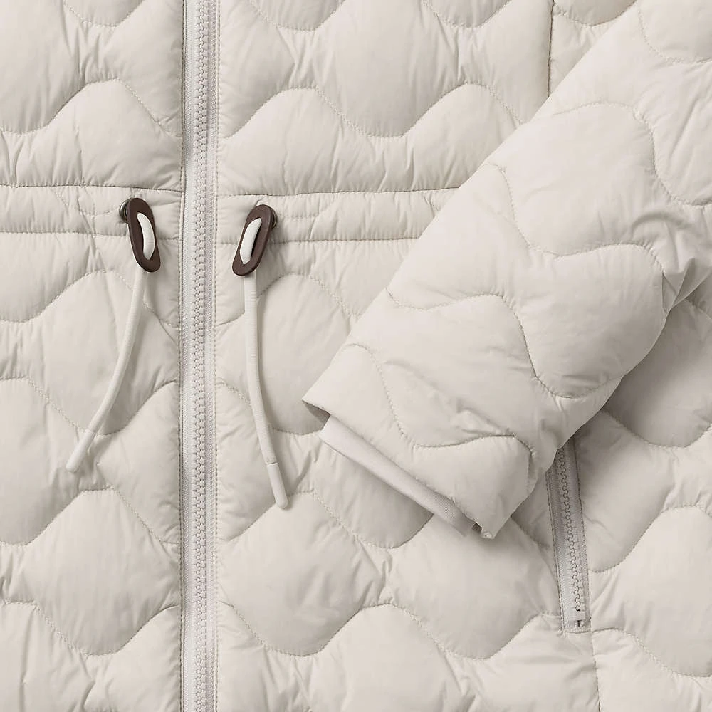 Unser beliebter, ultraleichter Daunenmantel, der sich so praktisch ganz klein verstauen lässt, wartet in dieser Saison mit einer besonders femininen Silhouette und Steppmuster auf. Innen hält nach wie vor ein leistungsstarker, hochwertiger Daunenmix die Kälte ab; Sturmbündchen und Kapuze halten die Wärme am Körper. Dank schlankem Schnitt lässt sich der ultraleichte Daunenmantel sogar unter einem weiteren Mantel tragen – zum Beispiel unter einem wasserdichten Regenmantel oder bei Eiseskälte unter einem Wintermantel. Und wenn Sie ihn nicht brauchen, macht er sich im mitgelieferten Packbeutel klein genug für Handtasche oder Rucksack. Das nennen wir mal praktisch.